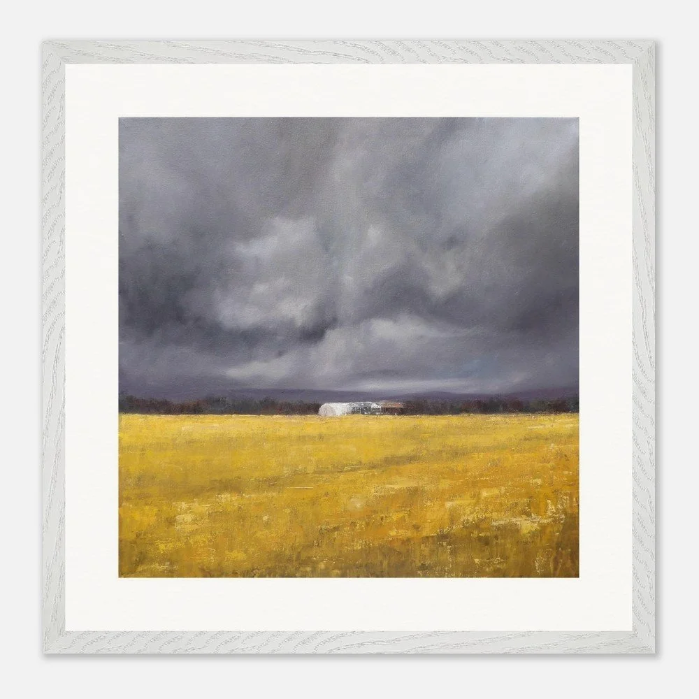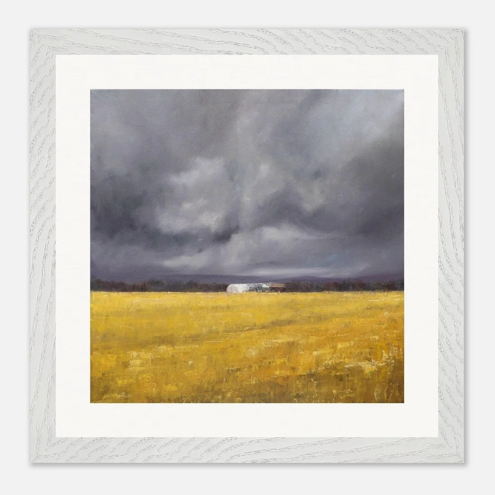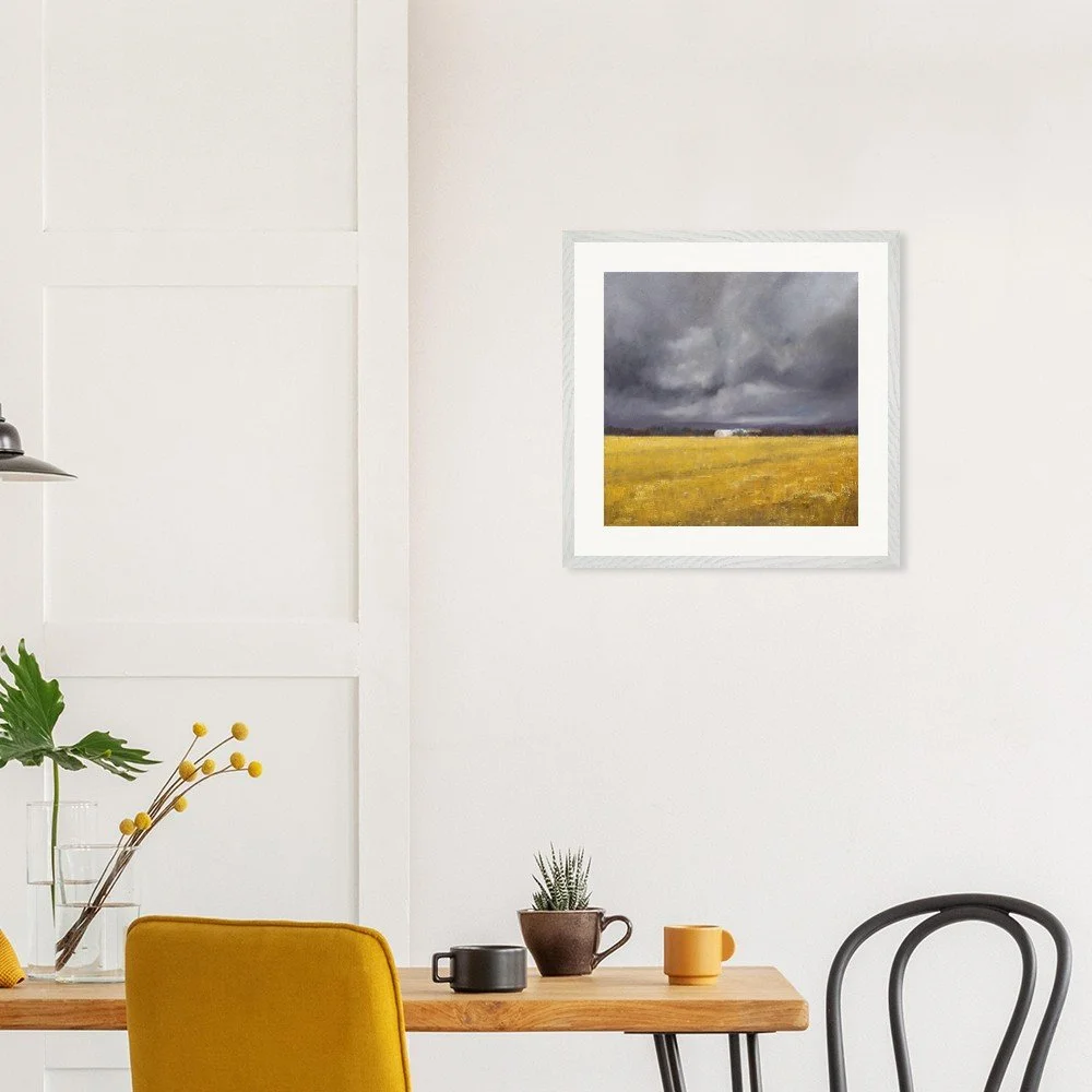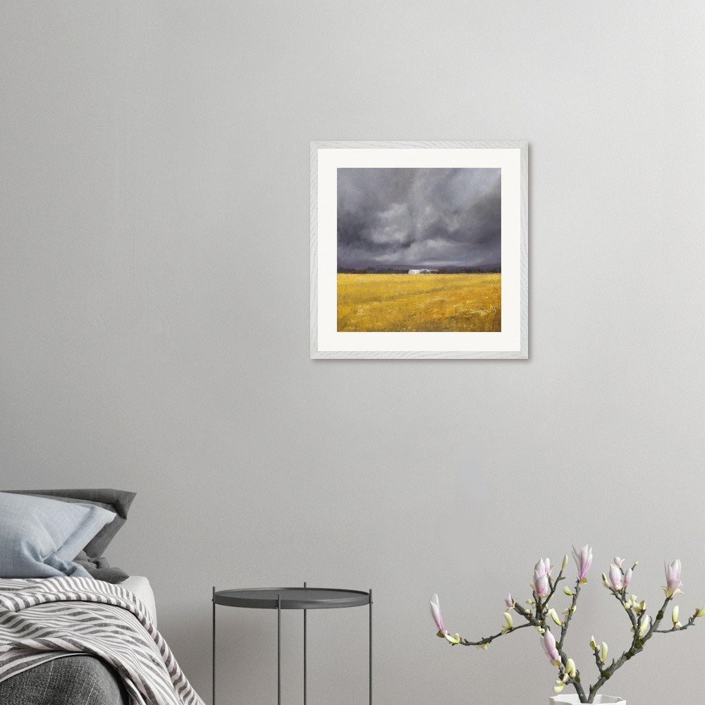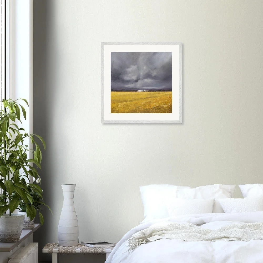Bring the serene beauty of the countryside into your home with this exquisite framed print. Featuring a captivating wheat field landscape, this artwork is a reproduction of an original oil painting by Northern artist Colin Slater.