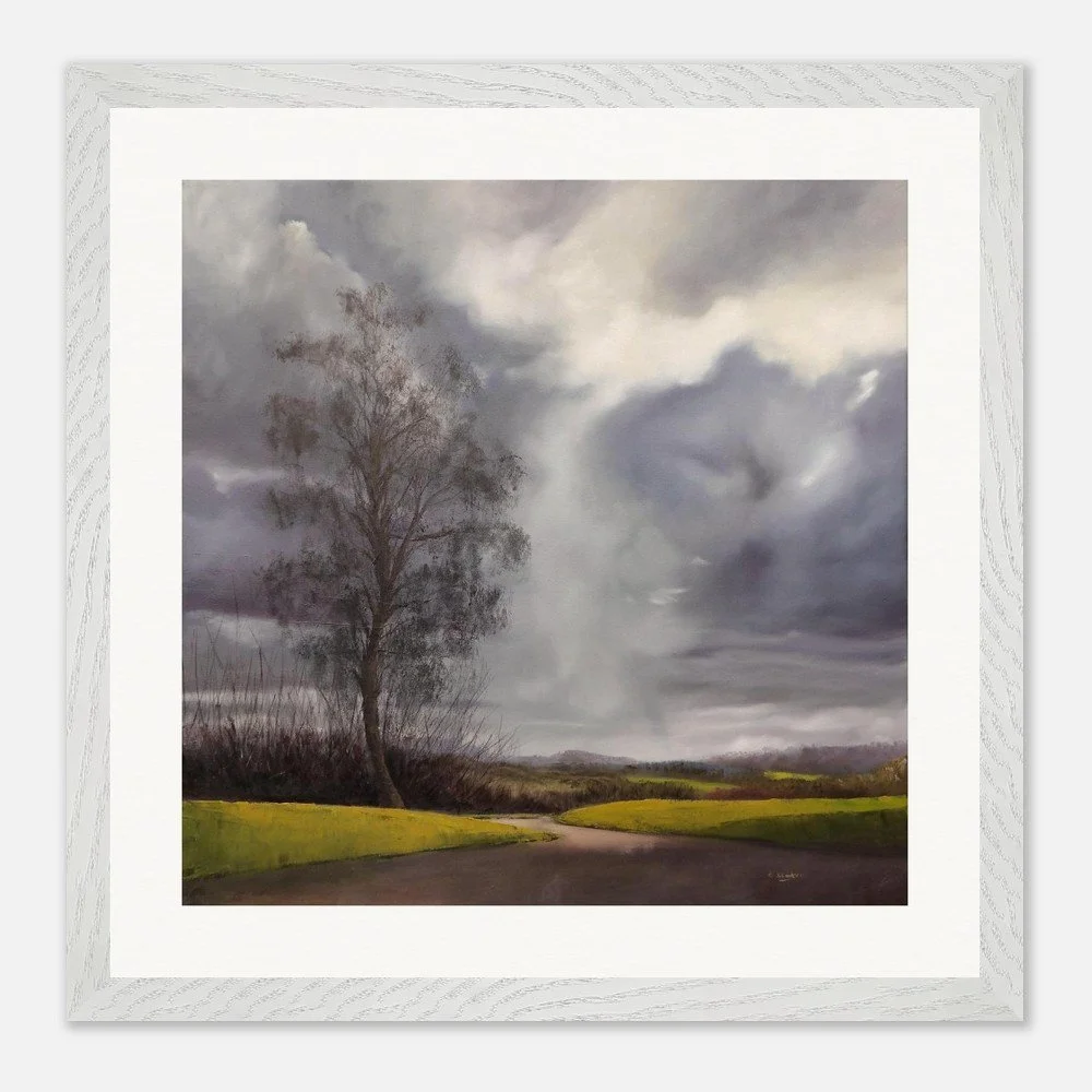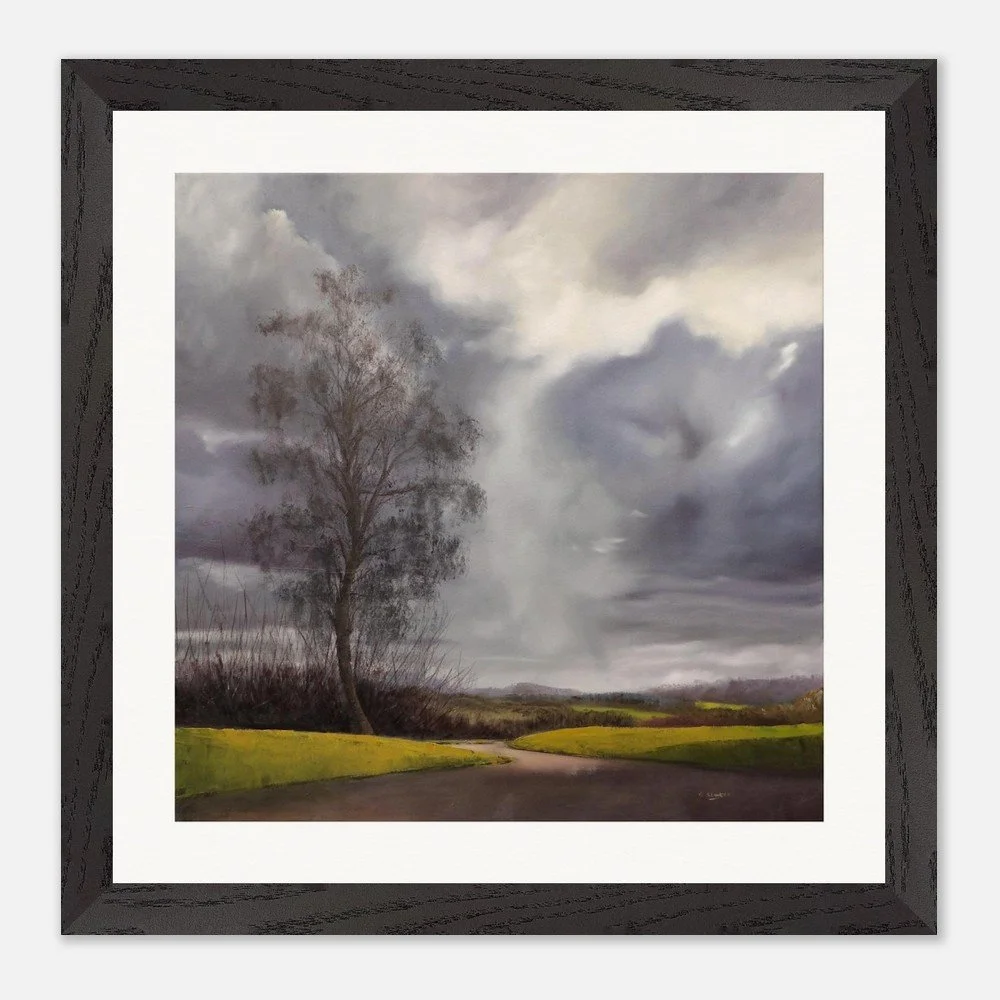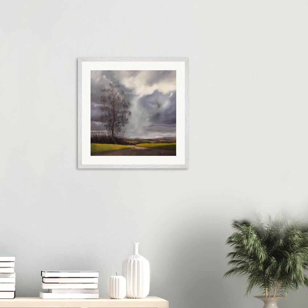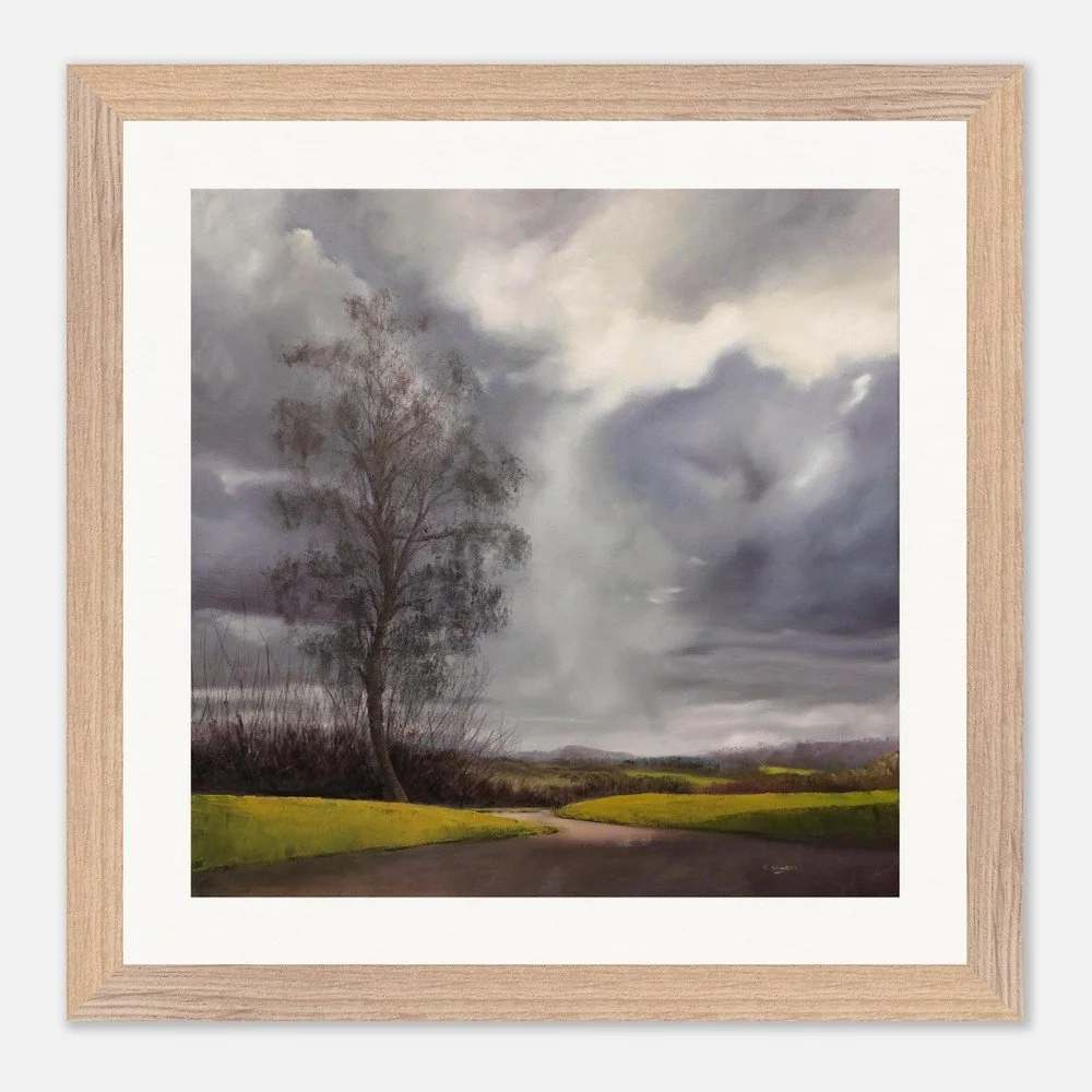 Elevate your space with the 'Sunshower' framed landscape print, a stunning reproduction of an original painting by North East UK artist Colin Slater. , printed on master's edition, museum-quality paper. The natural white, uncoated, and archival paper boasts a substantial 250 gsm weight and a matte finish, ensuring your artwork is presented with unparalleled clarity and depth.