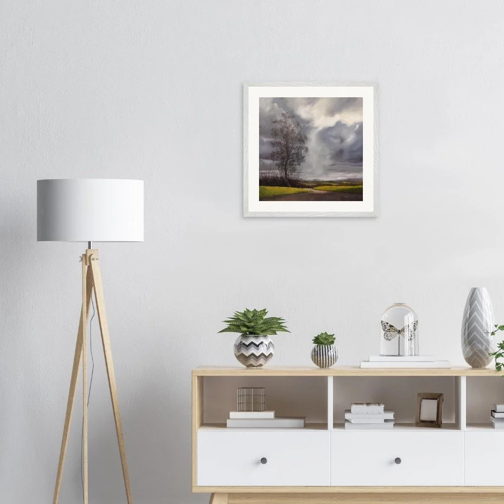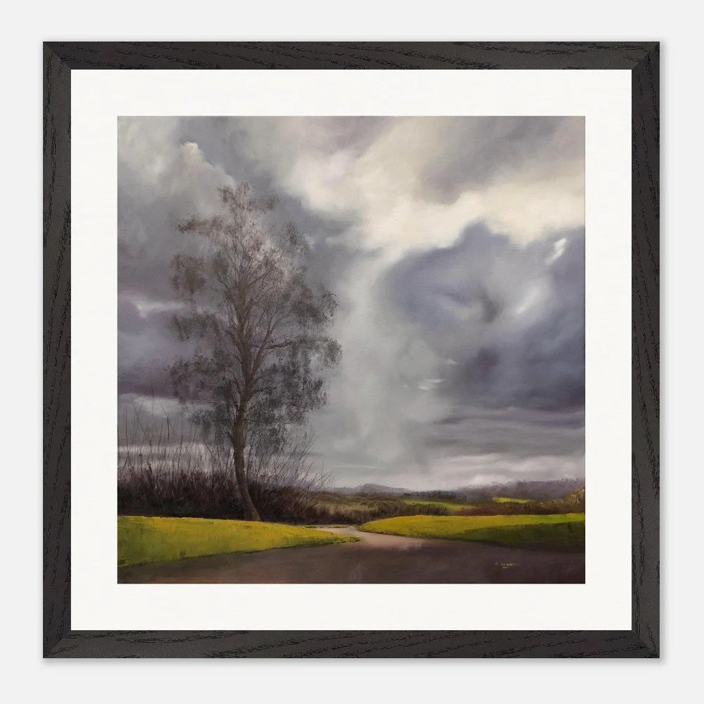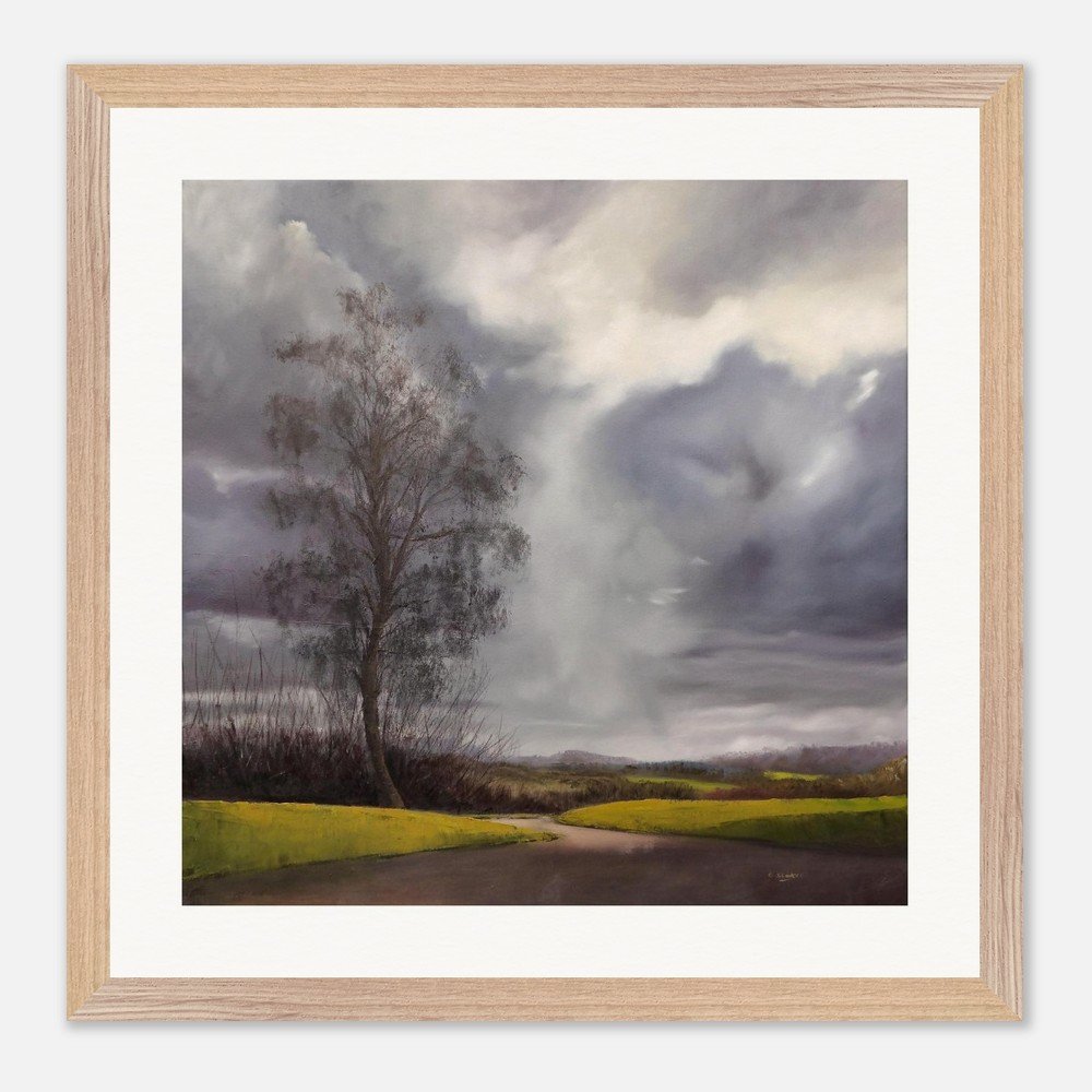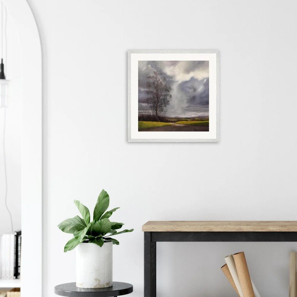 Elevate your space with the 'Sunshower' framed landscape print, a stunning reproduction of an original painting by North East UK artist Colin Slater. , printed on master's edition, museum-quality paper. The natural white, uncoated, and archival paper boasts a substantial 250 gsm weight and a matte finish, ensuring your artwork is presented with unparalleled clarity and depth.
